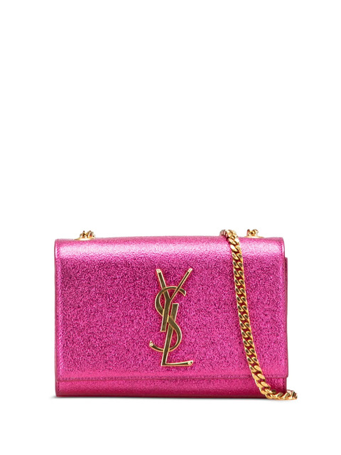 leather body gold-tone chain link shoulder strap front flap with a metal YSL logo and magnetic closure interior slip pocket pink Inclusions: dust bag. Condition: EXCELLENT. This previously owned item is in near-perfect condition with no signs of damage or use. Please refer to the photos on this product page for a detailed view of the item, including any damages declared.