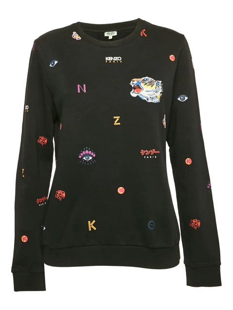 black cotton knit all-over graphic print tiger motif eye motif letter motif Condition: GOOD. This previously owned and used item is in good condition with minimal signs of use. This may include fading of material or plating and scratches.