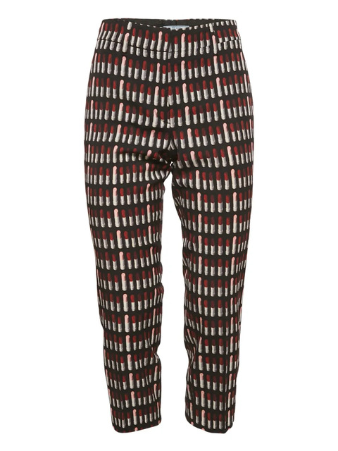 black slip-on style lipstick print straight-leg Condition: GOOD. This previously owned and used item is in good condition with minimal signs of use. This may include fading of material or plating and scratches.