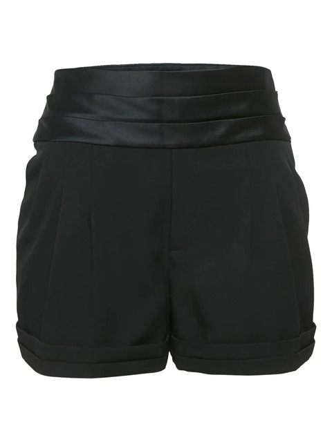 black satin finish pleated design high waist thigh length Condition: GOOD. This previously owned and used item is in good condition with minimal signs of use. This may include fading of material or plating and scratches.