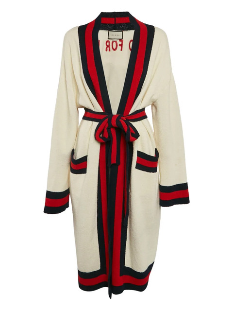 cream cotton terry-cloth effect tiger embroidery Web Stripe trim self tie belt Condition: GOOD. This previously owned and used item is in good condition with minimal signs of use. This may include fading of material or plating and scratches.
