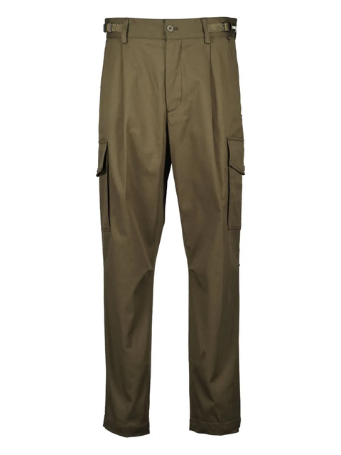 dark green buckle detail adjustable waistband logo patch zip and button fastening snap-button pockets