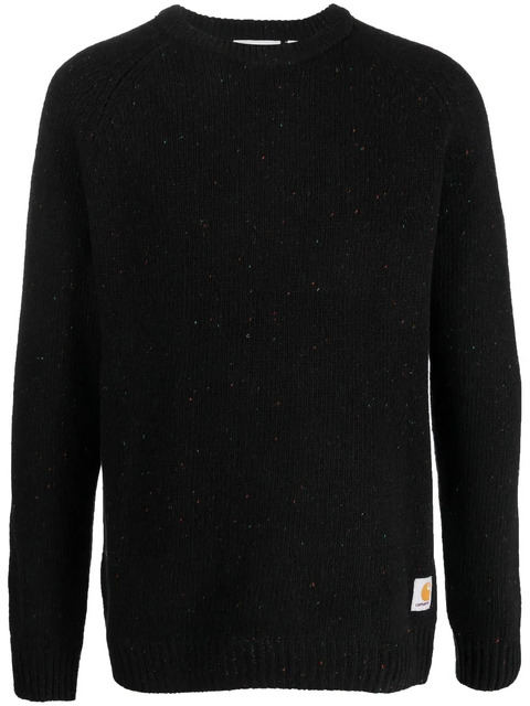 speckled black lambs wool-cotton blend marl knit logo patch to the front crew neck long sleeves ribbed-knit edge