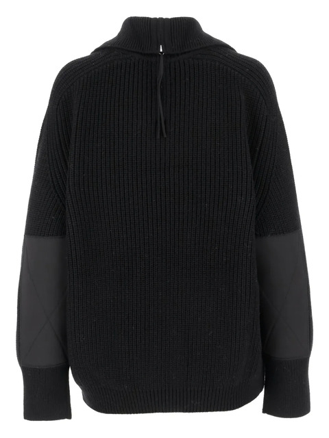 black wool long sleeves ribbed knit half zip fastening elbow patches