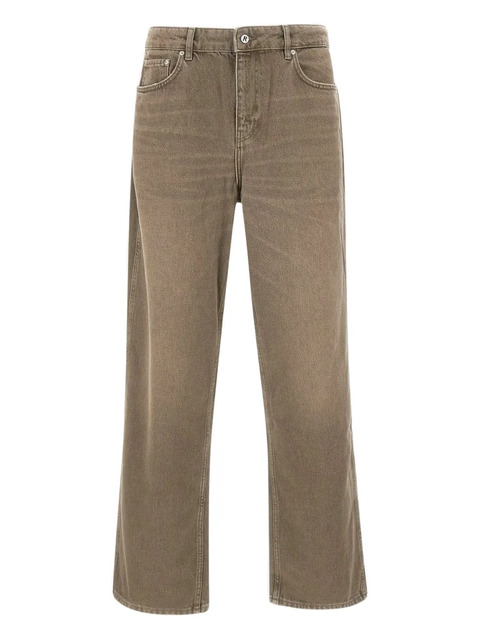 brown classic five pockets concealed fly and button fastening belt loops logo detail