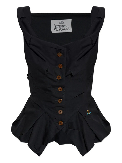 black peplum hem button front fastening sleeveless signature Orb logo motif