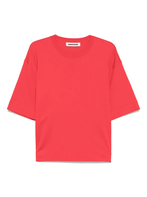 red crew neck drop shoulder short sleeves