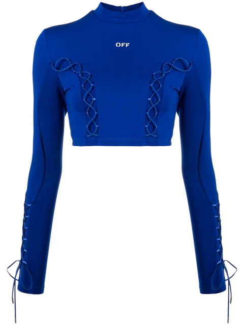 electric blue stretch-design logo print at the chest lace-up detailing mock neck long sleeves straight hem cropped