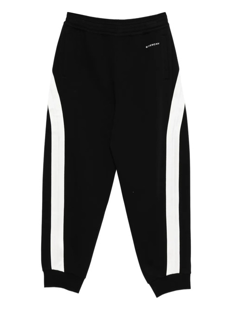 black cotton blend fabric stripe detail elasticated waistband side pockets logo embroidery