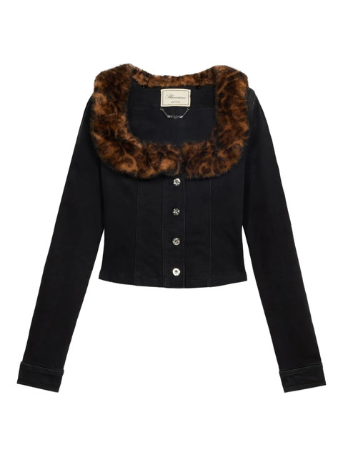 Blumarine faux-fur collar denim jacket - 30850484 (LPN340412)