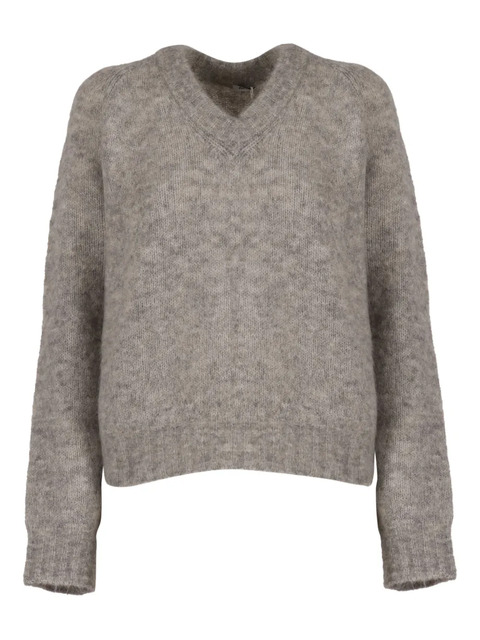 grey v-neck wool mohair blend raglan sleeves ribbed cuffs