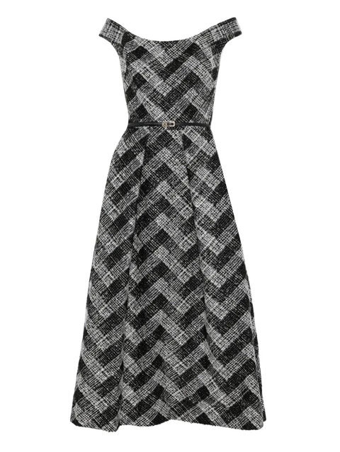 black/white chevron pattern off-shoulder rear zip fastening adjustable belt