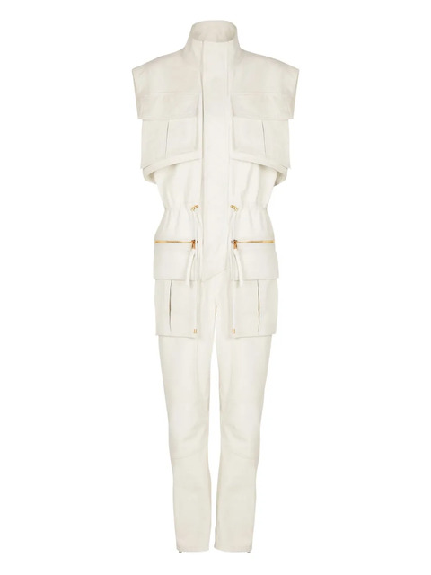 off-white lambskin leather high neck multiple pockets drawstring waist sleeveless design