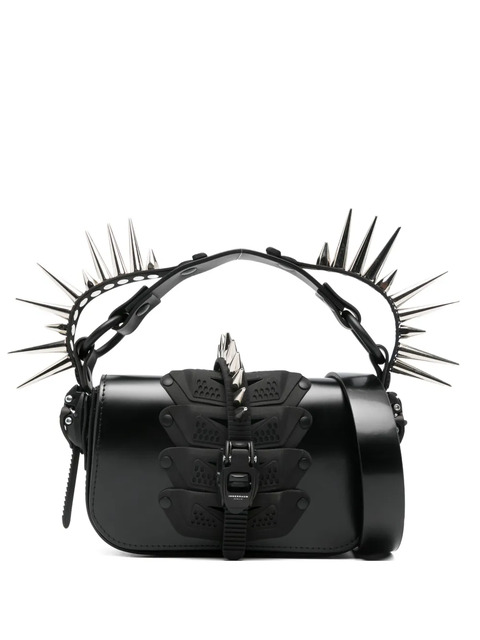 black spike embellishment top handle adjustable shoulder strap buckle fastening