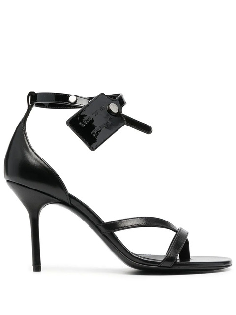 black calf leather signature Zip Tie tag open toe ankle strap high stiletto heel