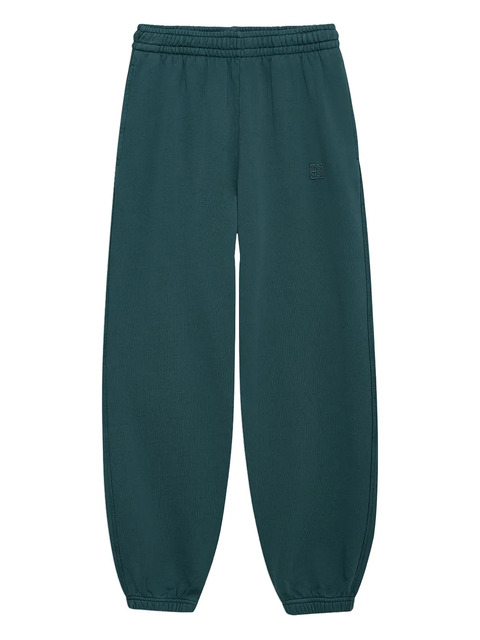 teal green elasticated waistband cuffed hems embroidered logo cotton construction
