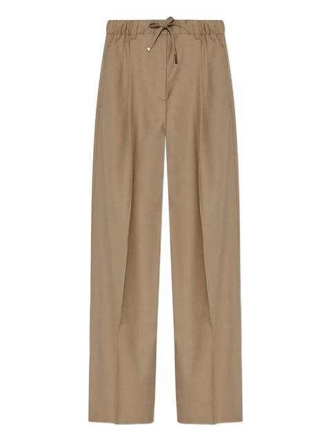 beige drawstring fastening elasticated waistband pleated front side seam pockets rear welt pocket