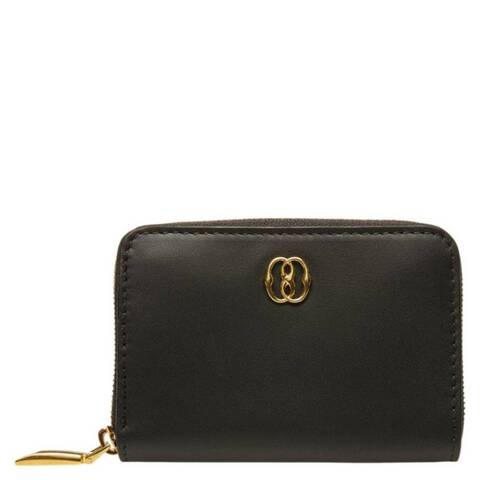 Bally Ladies Coin Purse. SKU: WLW01G-VT383-U901O. Color: Black/Oro. Bally Emblem Leather Coin Purse In Black. Crafted from premium calfskin, this coin purse is accented with a delicate emblem detail for a refined finish. It features multiple card slots and coin compartment, all securely fastened with a zipper for practical everyday use. 100% Leather.