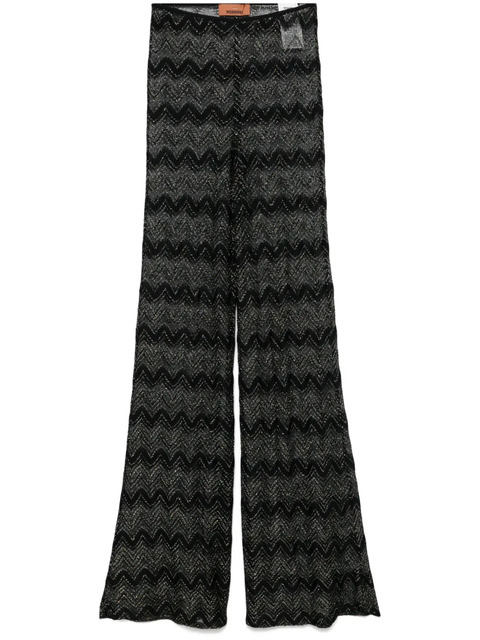 black crochet knit signature zigzag woven design flared leg elasticated waistband metallic threading high-waisted The item you receive may differ slightly from the item photographed. This is due to the artisanal nature with which all Missoni products are constructed.