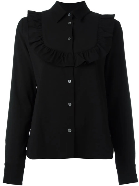 Black virgin wool blend ruffled panel shirt from Maison Kitsuné.