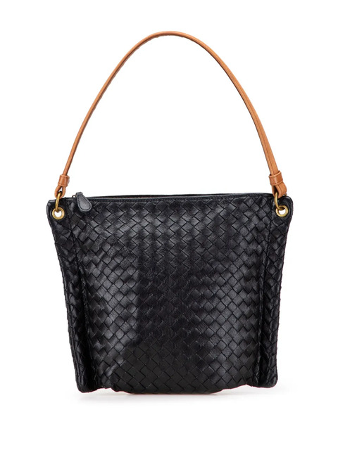 woven leather body flat leather shoulder strap top zip closure interior slip pocket black Serial Number: 210236 Inclusions: dust bag. Condition: GOOD. This previously owned and used item is in good condition with minimal signs of use. This may include fading of material or plating and scratches. Please refer to the photos on this product page for a detailed view of the item, including any damages declared.