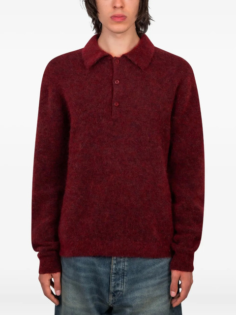 burgundy mohair polo collar three button placket long sleeves brushed texture