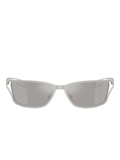 silver-tone mirrored lenses rectangle frame logo-engraved tips These glasses come with a protective case.