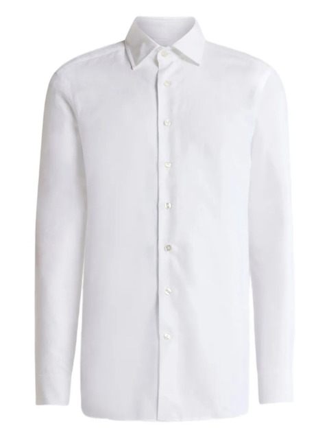 white cotton material jacquard weave floral pattern button fastening long sleeves