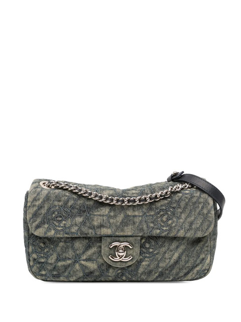 CHANEL Pre-Owned 2012 Medium Embroidered Denim Camellia Flap shoulder bag - 32188620 (LPN341506)