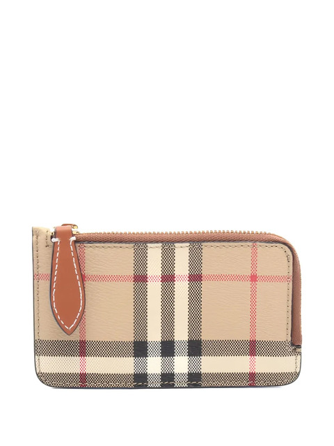 beige check pattern top zip fastening card slots gold-tone hardware rectangle shape