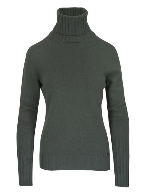 dark green turtleneck cashmere ribbed cuffs ribbed hem long sleeves straight hem