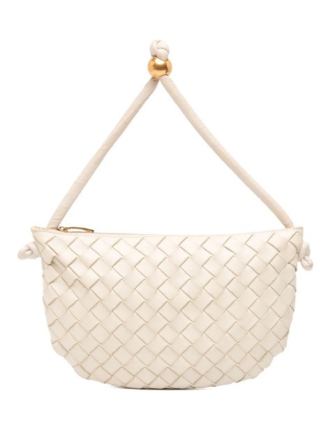 woven lambskin leather body rolled leather handle top zip closure white Serial Number: B0 This item has no inclusions. Condition: GOOD. This previously owned and used item is in good condition with minimal signs of use. This may include fading of material or plating and scratches. Please refer to the photos on this product page for a detailed view of the item, including any damages declared.