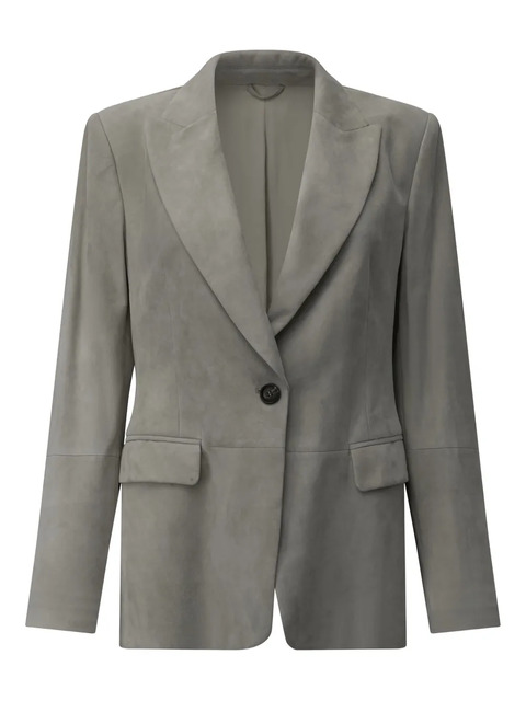 light grey suede leather single-button fastening peak lapel flap pockets long sleeves