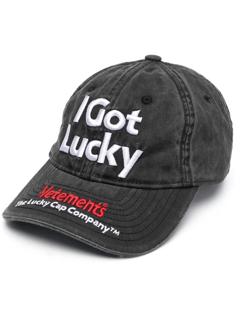 VETEMENTS slogan-embroidery denim cap - 20188253 (LPN342187)