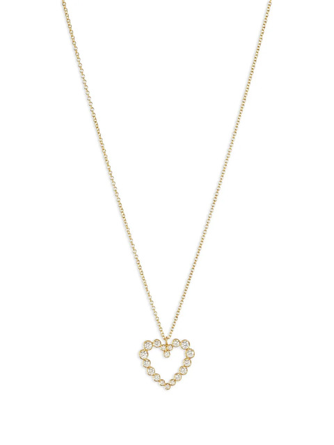 gold-tone 18K recycled yellow gold bezel-set round-cut diamonds totalling 0.42 carats heart-shaped pendant delicate chain polished finish Normal everyday use and external agents may reduce the lustre of gemstones and gold surfaces. To maintain, use specific, non-abrasive products specially meant for cleaning jewellery.