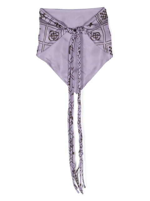 lilac purple silk geometric body all-over graphic print braided edge finished edge