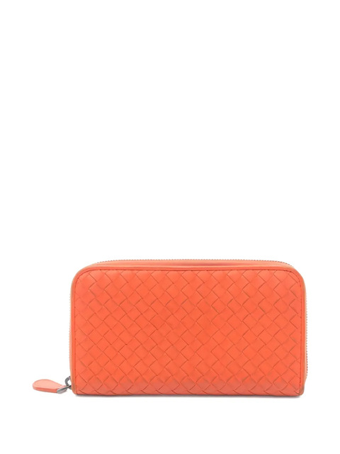orange leather signature Intrecciato design top zip fastening internal card slots internal zip-fastening pocket