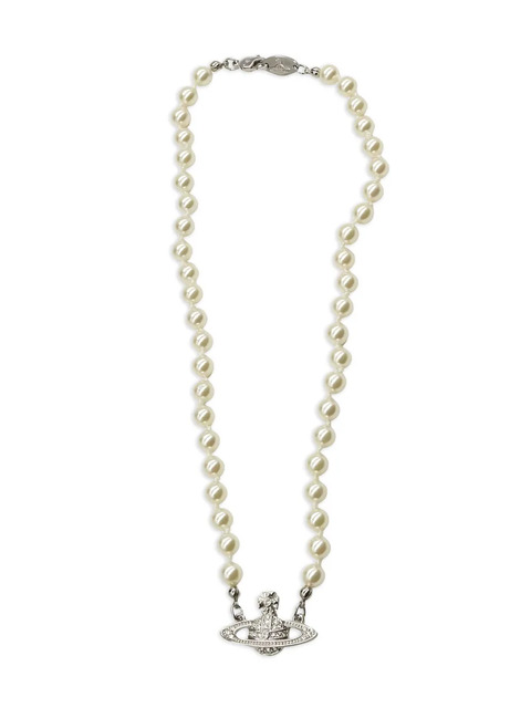 white faux-pearl detailing bead chain signature Orb pendant lobster clasp fastening