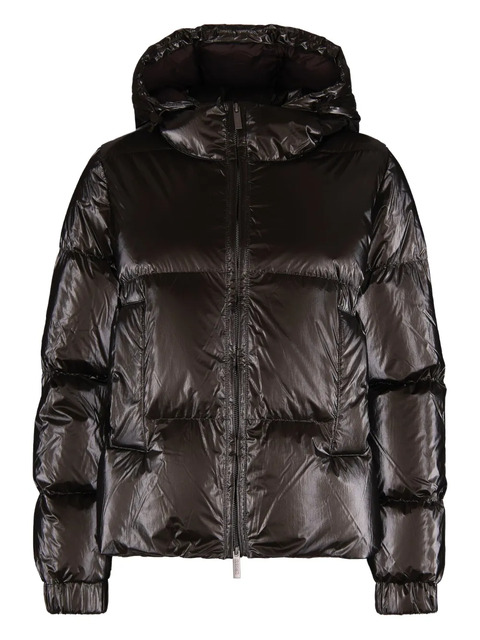 black puffer design hooded zip fastening press-stud pockets elasticated hem