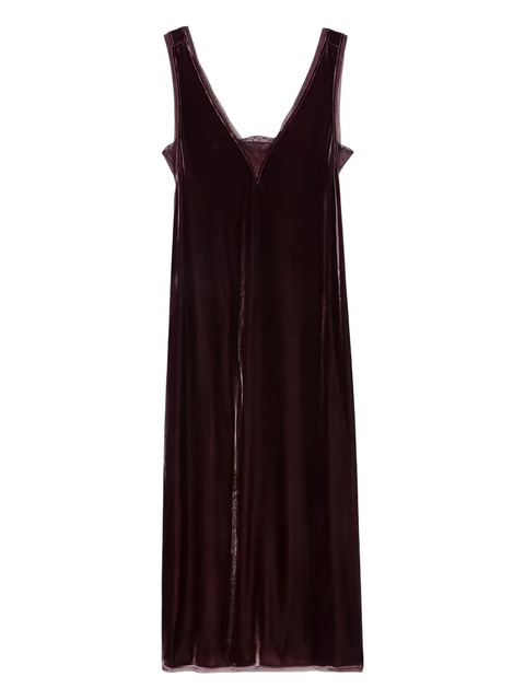 purple velvet texture lace trim V-neck sleeveless side slit
