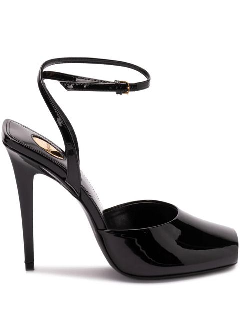 black leather buckle-fastening ankle strap square toe branded insole 110mm stiletto heel