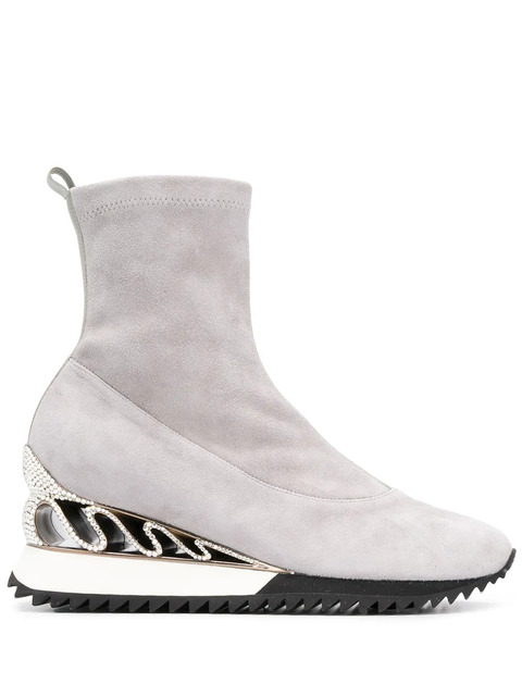 Grey goat skin and suede Reiko Wave sneakers from Le Silla featuring a round toe, an ankle length, a pull tab at the rear and a flat rubber sole.