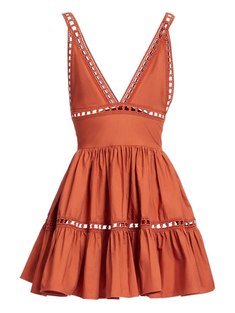 orange organic cotton blend sleeveless v-neck tiered skirt cut-out detailing