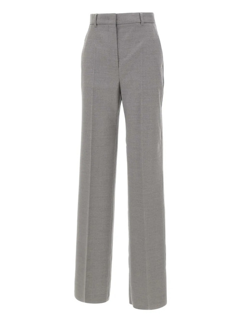 grey wool flannel high waist belt loops side pockets pressed front crease
