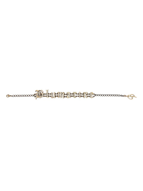 gold-tone crystal embellishment engraved logo anchor chain matte finish lobster claw fastening