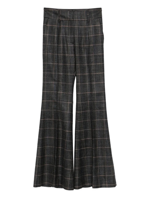 charcoal grey plaid pattern flared leg concealed fastening belt loops rear welt pocket