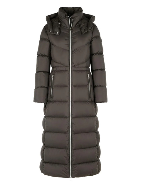 brown removable hood raised neck zip closure side zip pockets elastic cuffs