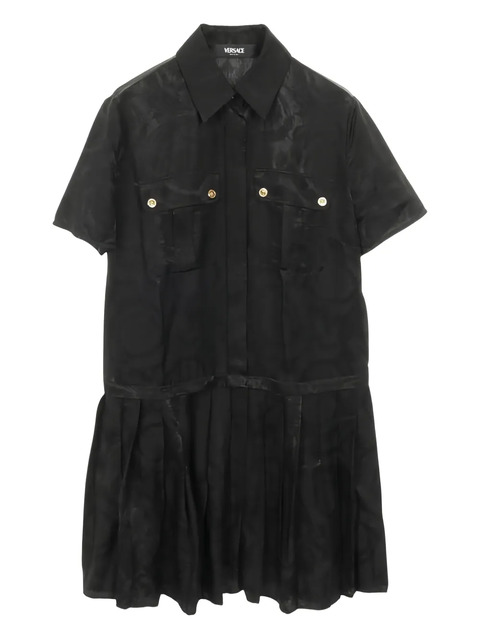 00s black floral jaquard pattern button embellishment short sleeves pleated skirt chest pockets