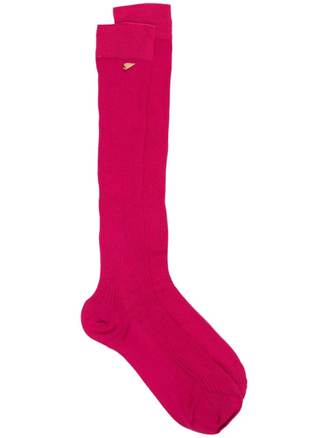 dark pink silk ribbed knit logo plaque knee-length Be sure before opening, as socks and hosiery can only be returned in their original, unopened packaging.