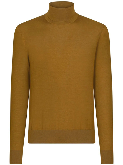 roll-neck silk-cashmere jumper from DOLCE & GABBANA featuring brown, cashmere-silk blend, fine knit, roll neck, long sleeves, ribbed cuffs and ribbed hem.